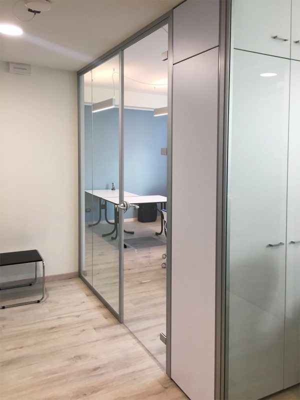 – custom-made glass wall with special transparent glass 6 + 6 + acoustic pvb