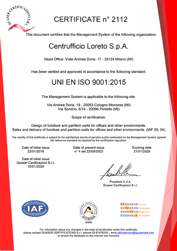 Centrufficio is certified in compliance with UNI EN ISO 9001