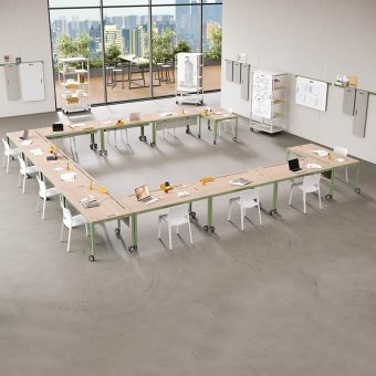 An innovative mobile system that revolutionises the concept of a hybrid workspace. MOBI consists of a desk on wheels, a desk trolley that becomes a shelf and a series of coloured accessories for unlimited customisation. Perfect for dynamic and flexible environments.