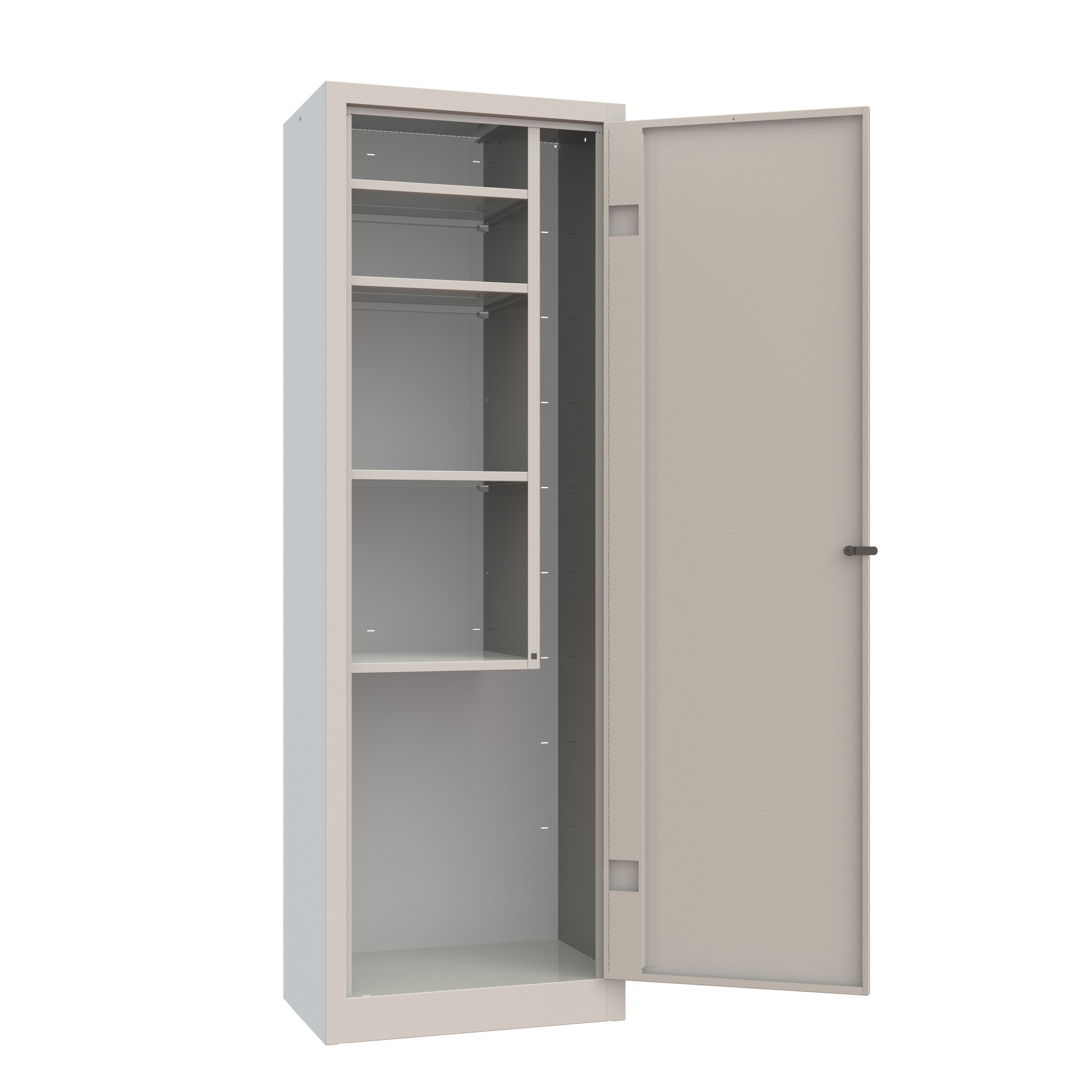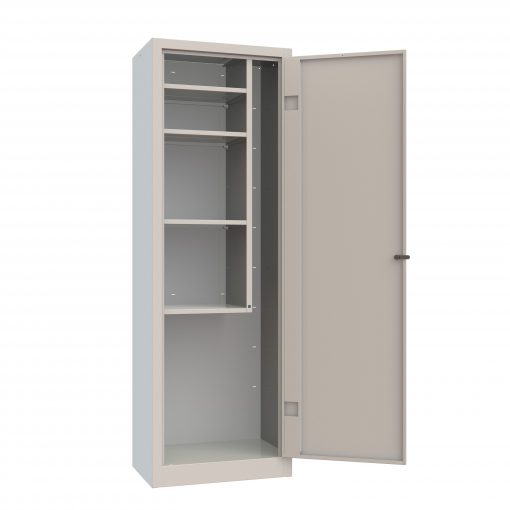 The multiuse cabinets are made of top-quality sheet steel monoblocks, and are equipped with: cylinder lock with Yale key, metal base, internal shelf kit that can be repositioned on rack (the kit is different depending on the type of cabinet required).