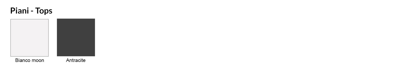 The tops are made of laminated melamine, in moon white and anthracite finishes.