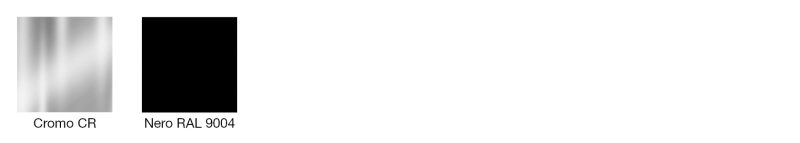 a slitta in metallo, disponibile cromata o verniciata in colore RAL 9004. Telaio in filo di