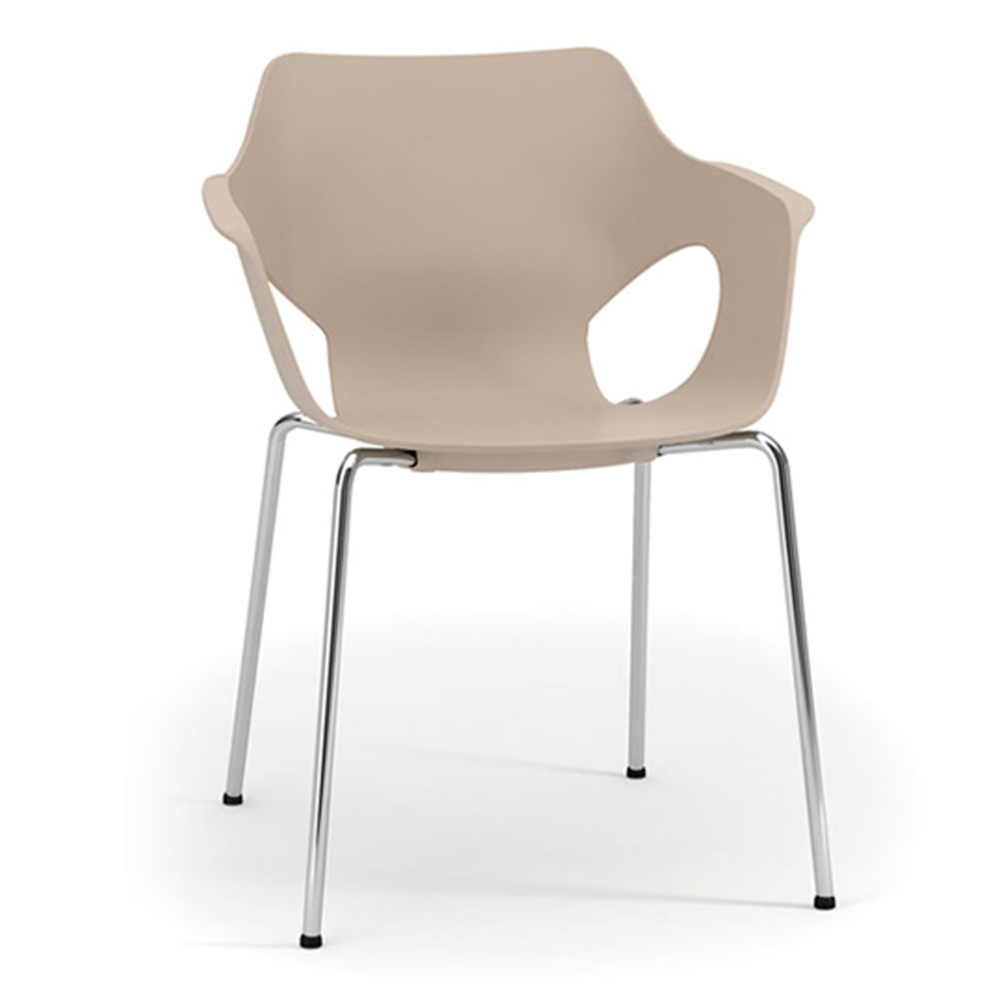 in polipropilene (PP) anti UV disponibile in 3 colori: bianco, tortora e grigio. Impilabile sino a 4 pezzi.