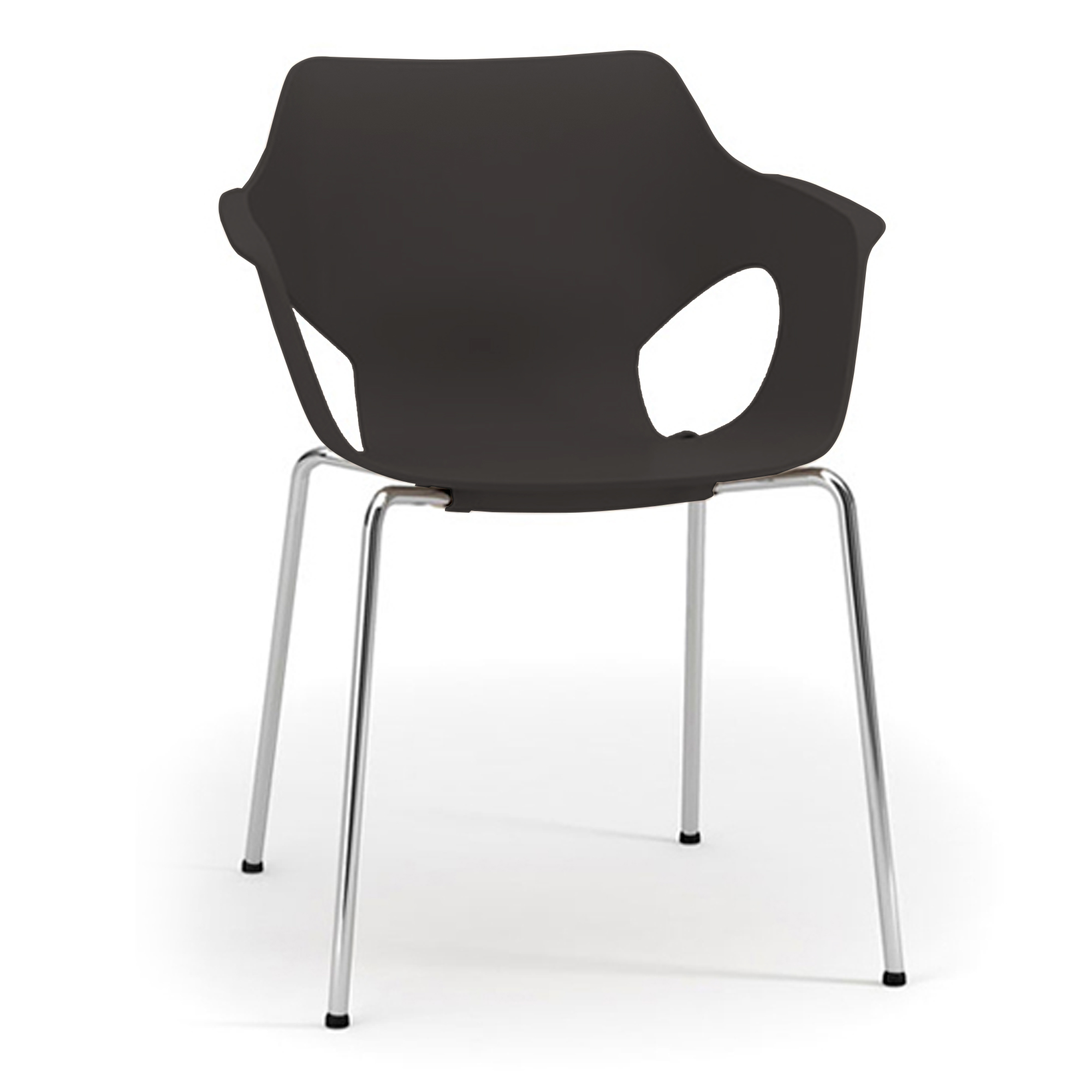 4 gambe in metallo disponibili cromate o verniciate in colore RAL 9004. Telaio in tubo tondo Ø16