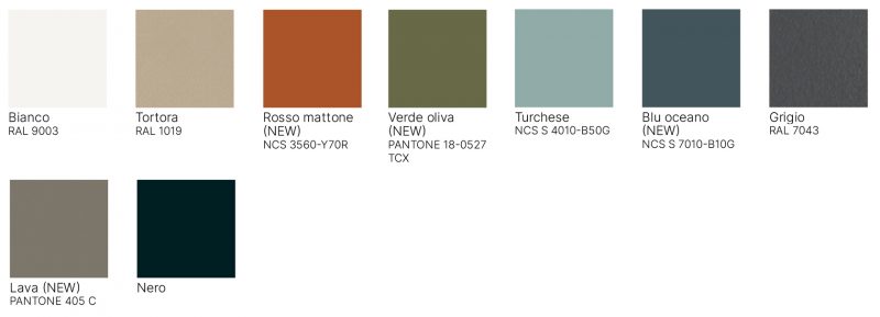 Gambe in acciaio diametro 14×2 nelle finiture: cromato, verniciato alluminio, verniciato bianco, verniciato nero.