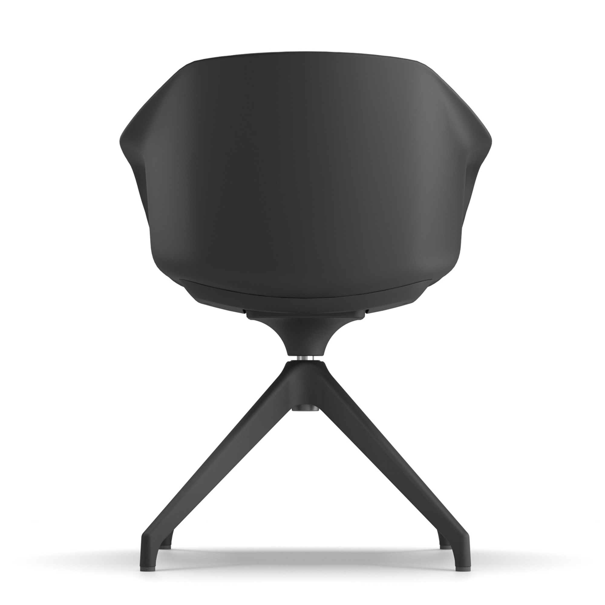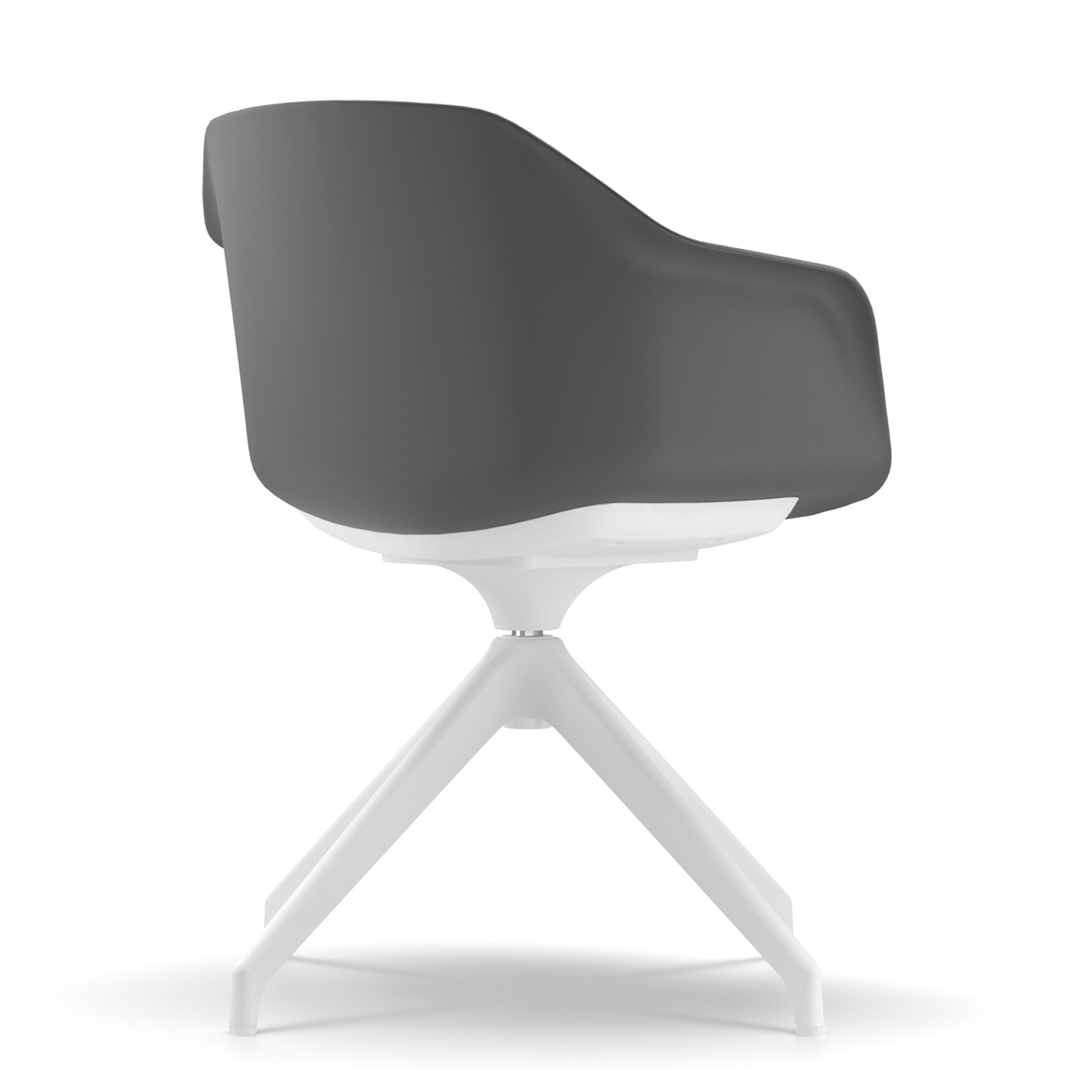 Base in polipropilene (PP), girevole a 4 razze piramidale, disponibile nei colori bianco o nero.