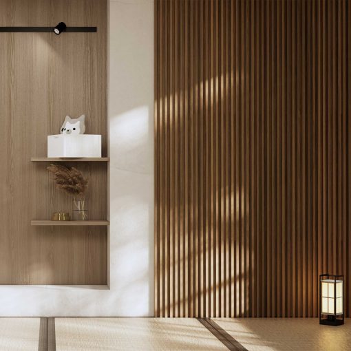I pannelli acustici fonoassorbenti Acustic Wall con dimensioni L. 2,9 m, P. 40,6 cm sono realizzati in HDF e impiallacciatura in vero legno senza nodi MDF 12 mm. su un lato, che conferisce loro un aspetto e carattere unico.