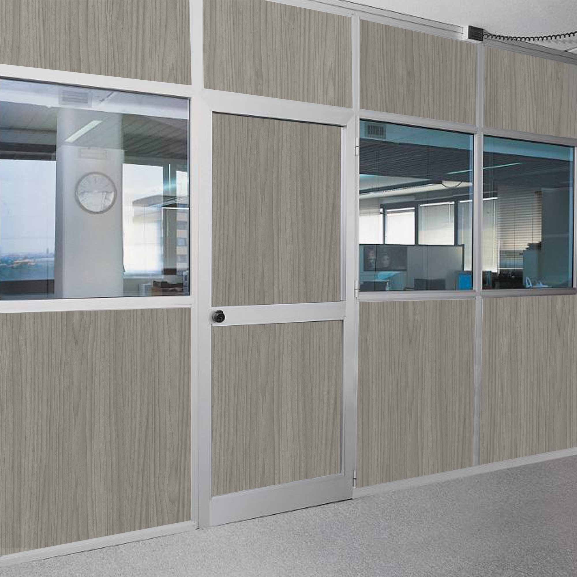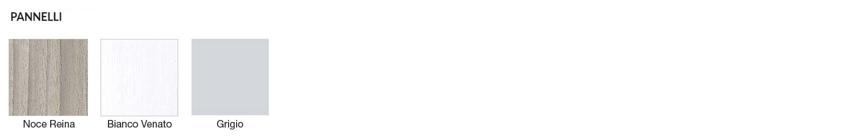 La parete New Icaro è composta da una struttura di alluminio di spessore cm. 4 in cui vengono alloggiati pannelli lignei verticali in nobilitato melaminico, oppure vetri float sp. 4 mm. oppure temperati da 5 mm. o acidati.